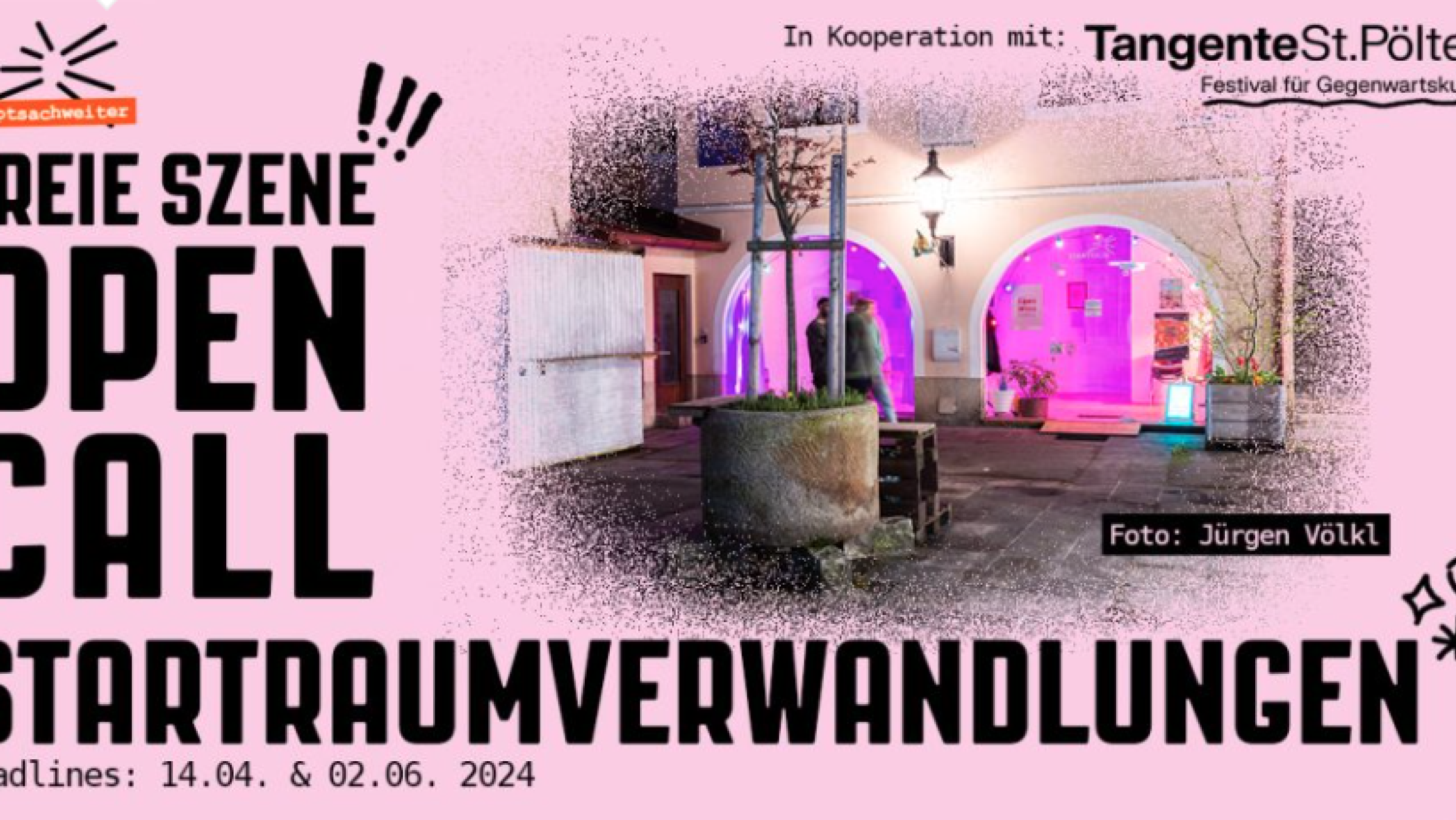 Für diese Ausschreibung räumen wir unser Vereinslokal „STARTraum“ und machen Platz für die „STARTraumverwandlungen“, mit je einer Dauer von 2 bis 4 Wochen und einem Budget von bis zu € 4.000,- (je nach Dauer/Konzept). Die Auswahl wird von einer externen, 5-köpfigen Jury getroffen.